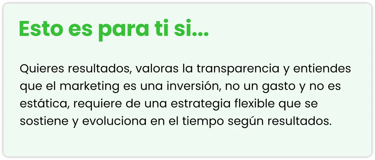 Nuestro foco es uno solo: que tu marketing deje de ser un gasto incierto y se transforme en una herramienta que realmente te traiga clientes y te permita crecer con control.